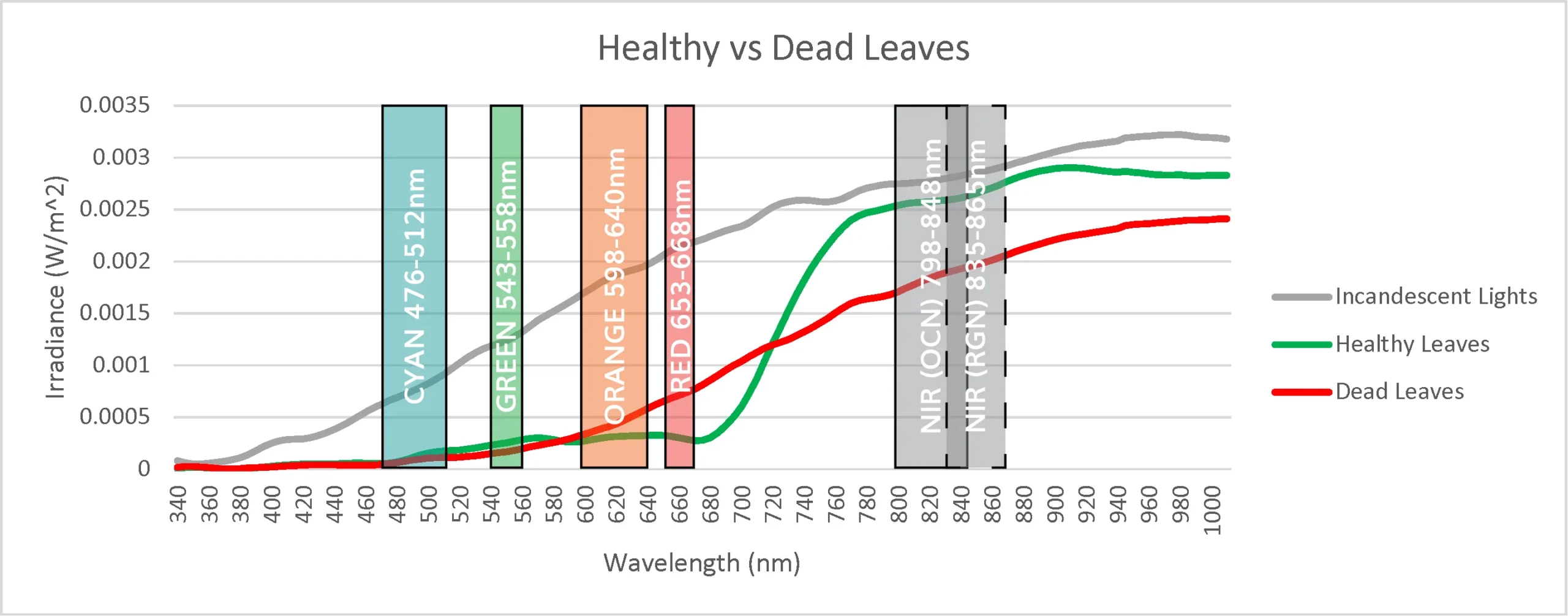 我们很多客户都关注植物健康状况的追踪,因此最常被问到的问题就是:哪款多光谱滤光片效果最佳?同时也有用户疑惑,为何使用类似滤光片(如RGN与OCN)时获得的指数值会存在差异。通过下文详解,您将获得答案: