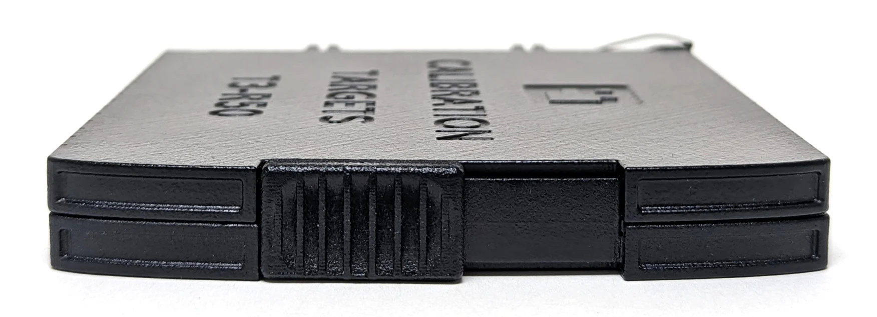 靶标外壳一侧为公制刻度尺,另一侧为英制刻度尺。铰链处设有居中气泡水平仪辅助调平。内置3个标准1/4-20黄铜螺纹嵌件,便于将靶标固定于任何拍摄对象。通过三脚架安装可使靶标离地悬空,保持清洁。