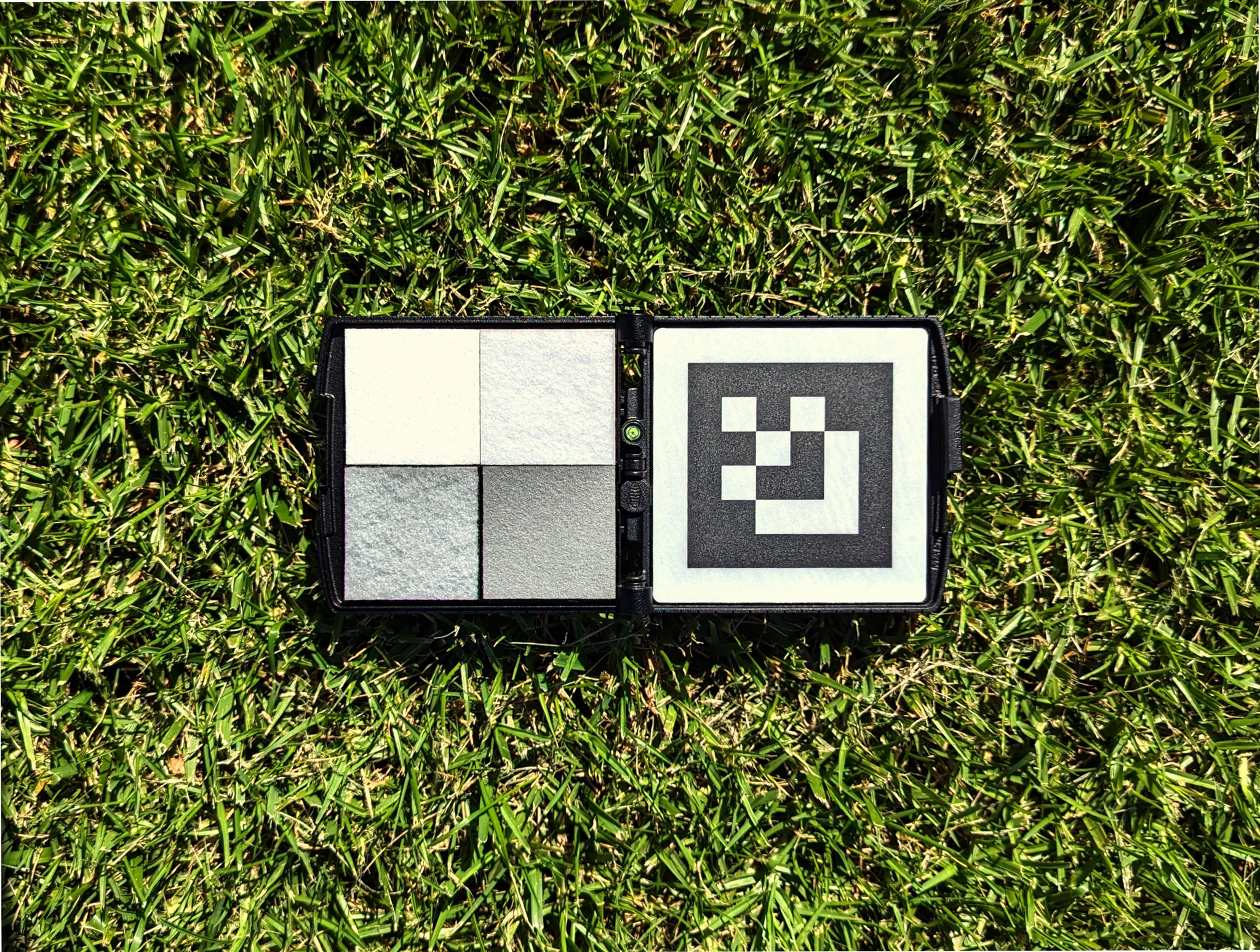 MAPIR提供紧凑型漫反射标准校准靶标套装(T3-R50),内含4个已知反射率的参考标准靶标。反射率数据(250-2500nm波段漫反射与总反射百分比)采用多台配备积分球的岛津分光光度计测定。这些朗伯反射板因具备相似的漫反射与总反射特性,可从任意角度采集,但仍建议垂直拍摄。我们的计算机视觉软件可自动识别靶标图像中的QR符号,并依据已知靶材反射率数据([数据下载])计算像素与反射率的对应关系。