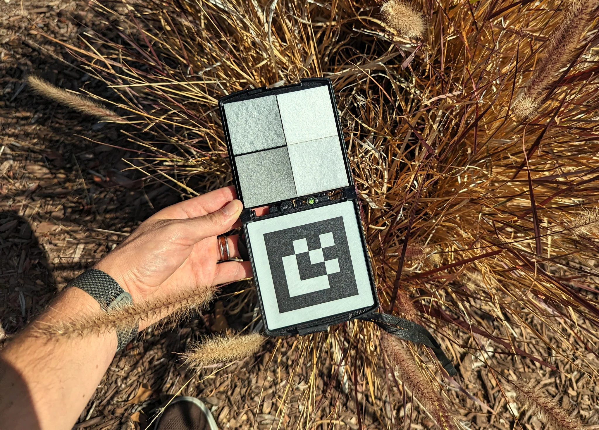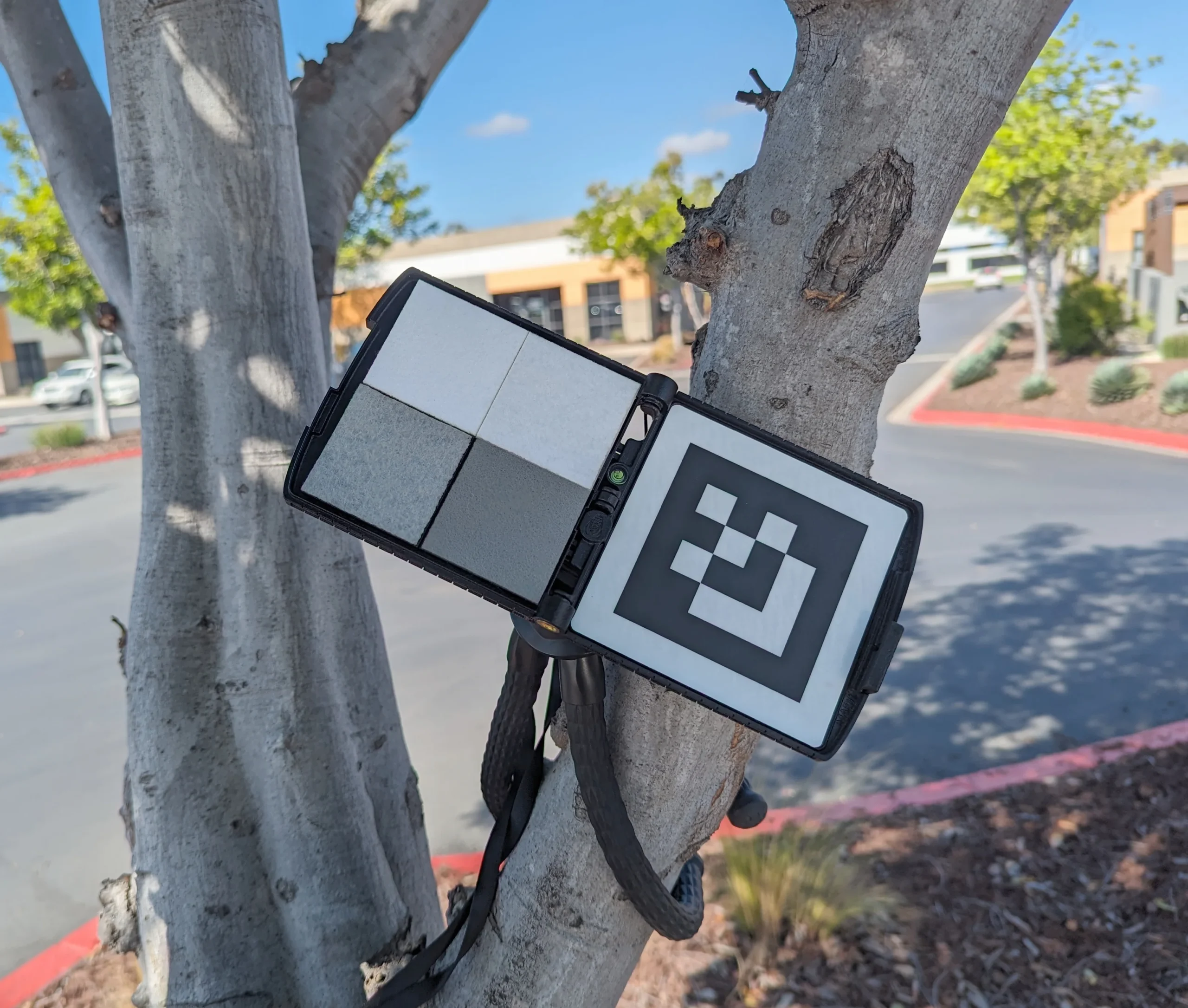 使用靶标时,只需拍摄完整展开的套装照片,确保QR码面与4个靶标面均清晰可见。请尽量避免强烈阴影遮挡QR标签白色外缘,可根据需要旋转靶标角度。完整拍摄教程请参阅[此链接]。